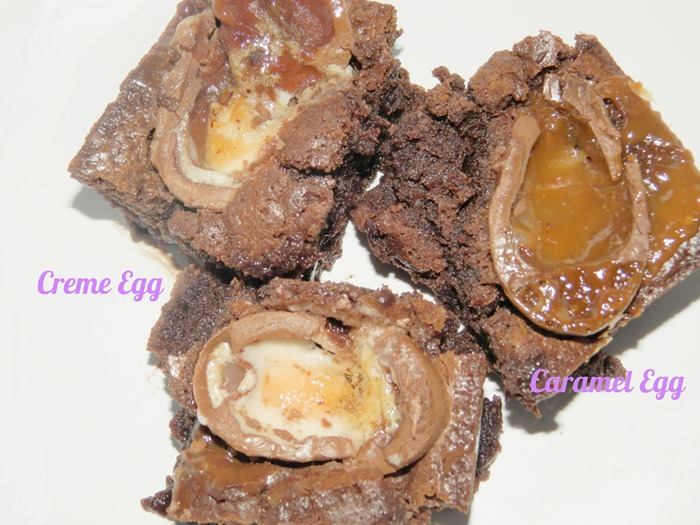 The original recipe is for Cadbury Creme Egg Brownies and it has circulated various food blogs over the run up to Easter, but as members of my family do not like Creme Eggs my boyfriend suggested we made Cadbury Caramel Egg Brownies as well. The mixture of gooey brownies with the Caramel or creme egg filling is just divine!